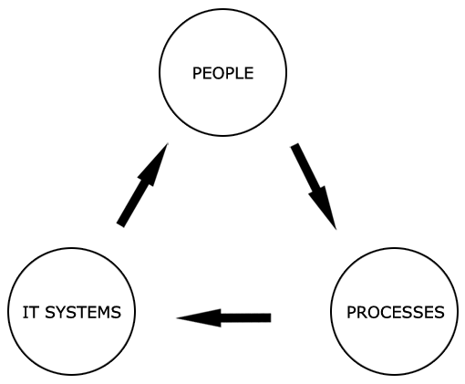 The only a prior assumption that should be made is that we should look at the organisation as a system. People, processes and IT are all in the system but do not constitute the whole. This model may elevate people, processes or IT to a position where they are viewed as more important/critical than in fact they are. It may lead to solutions which do not, in fact, improve the system.